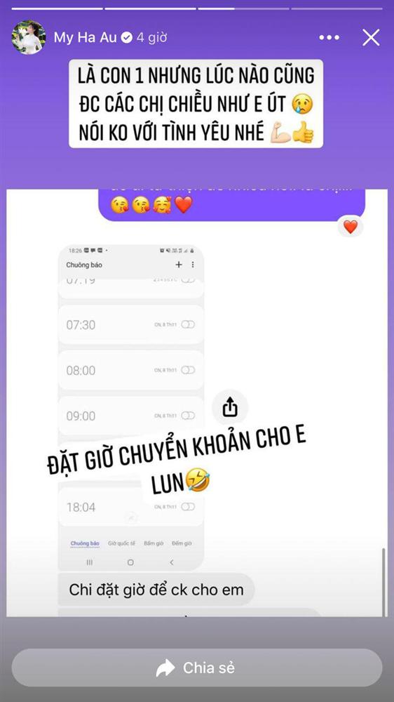 Thế nhưng, đáp lại sự thắc mắc của dân tình, Âu Hà My khẳng định đó là số tiền mà một người chị thân thiết chuyển cho cô để "lấy hên". Ngoài ra, nữ giảng viên còn khẳng định chắc nịch: "Nói không với tình yêu".