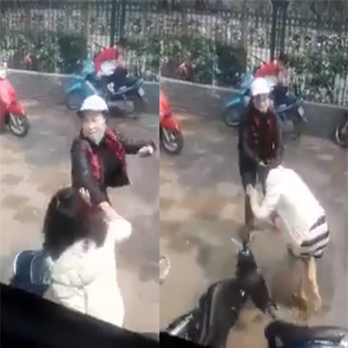 Ngay lập tức, người đàn bà này lao tới tát tới tấp, túm tóc lôi đổ cả xe cô gái rồi đạp vào mặt. Trong khi đó nạn nhân chỉ lấy 2 tay ôm bụng bầu 4 tháng. Sự việc chỉ dừng lại khi có người bảo vệ gần đó can thiệp.