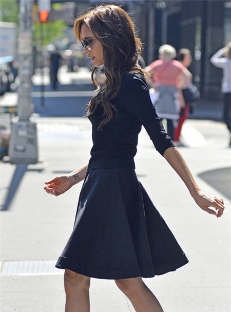 | Hôm qua, Vic thu hút sự chú ý khi diện váy đen theo phong cách cổ điển, kín đáo đi dạo tại New York. Bà mẹ bốn con tạo điểm nhấn bằng đôi giày màu kem dễ thương |