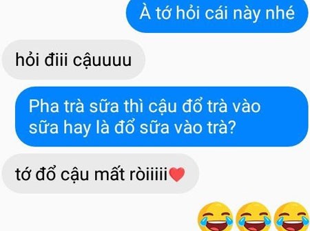 "Trà đổ vào sữa hay sữa đổ vào trà đều như nhau, thế anh đổ em sao em không đổ anh?" - Lại một trào lưu nhắn tin khác với những câu trả "bá đạo" sẽ khiến bạn phải cười lăn lộn.