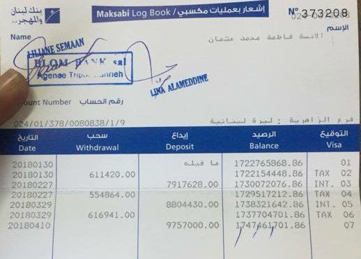 | Cuốn sổ tiết kiệm hơn 1,7 tỷ Lebanon Pounds (tương đương gần 25,5 tỷ đồng) của bà Othman. (Nguồn: AN) |