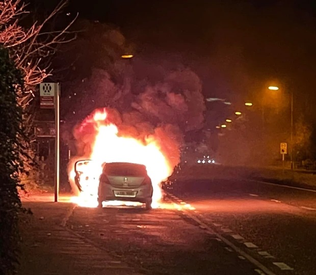 Chiếc xe đã bốc cháy ngùn ngụt trong giây lát.