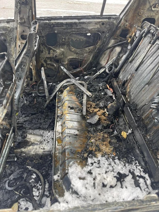 Chiếc xe cháy rụi chỉ còn trơ lại khung.