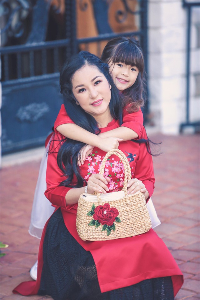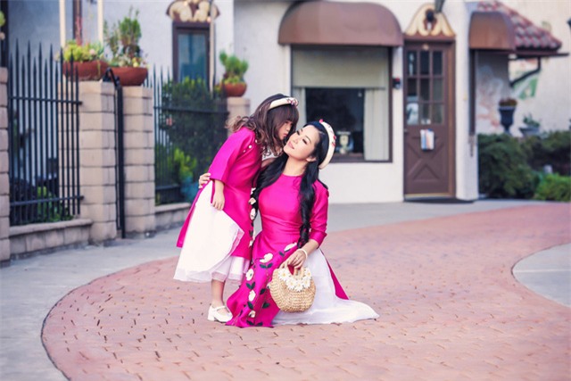 Bộ ảnh này hai mẹ con chụp sát giờ ra sân bay về Việt Nam làm từ thiện. Lần về nước này chỉ có 10 ngày vì cô phải trở lại Mỹ sớm để chăm sóc cho Nguyệt Cát.