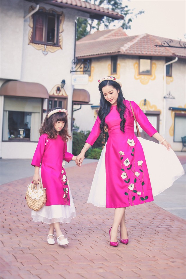 con gái Nguyệt Cát đã thực hiện bộ ảnh mặc áo dài đôi. Nhiều người cho
