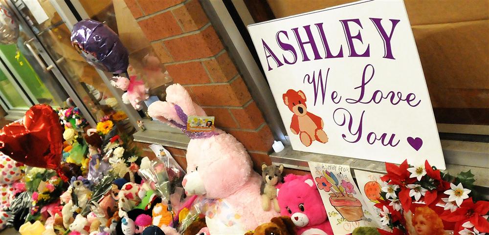 Nhiều người dân Ohio sau khi biết chuyện đã tới khu vực nhà hàng đặt hoa tưởng niệm cô bé Ashley xấu số bị chính bố mẹ đẻ giết chết.