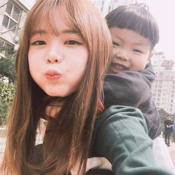 Bức ảnh Young Gi chụp cùng con trai mới đây được cư dân mạng nhận xét là trông không khác gì hai chị em.