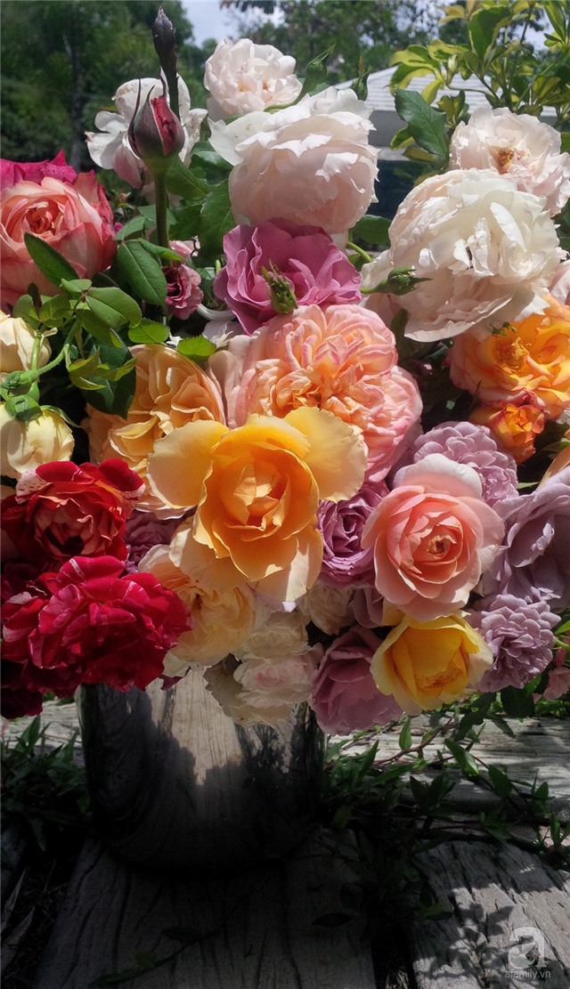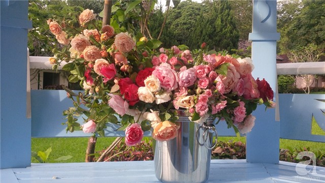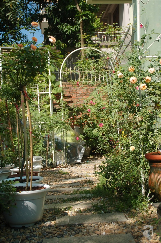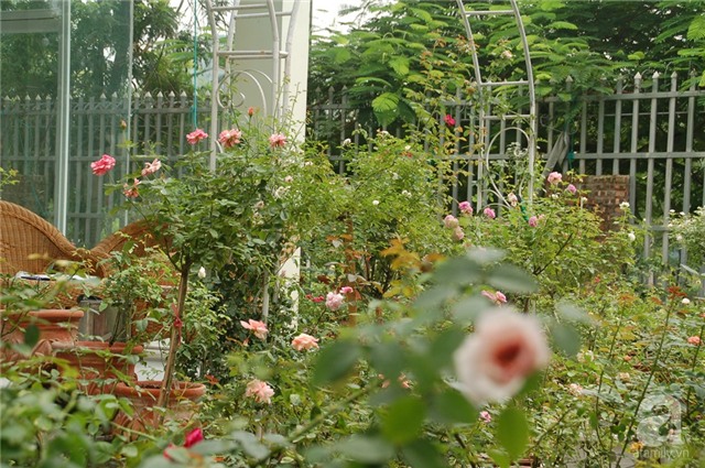 Chắc hẳn mọi người sẽ vô cùng ngạc nhiên khi những giống hồng của David Austin và nhiều loài hồng ngoại quý hiếm khác nở hoa rực rỡ, tỏa hương quyến rũ ngay trong khu vườn nhà của chị Lê Bích Hạnh ở Hà Nội.