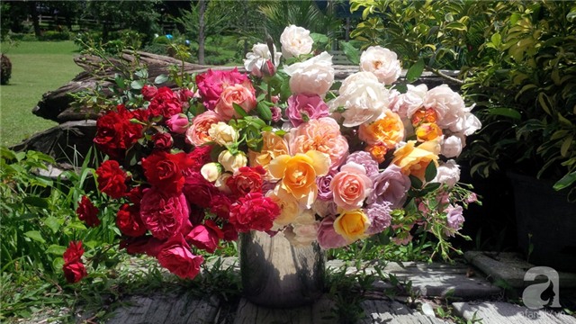 Hiện tại trong vườn nhà chị có khoảng bao nhiêu loài hồng? Cách chăm sóc các loài hồng có giống nhau không?