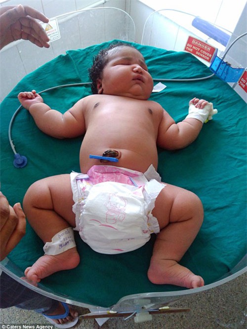 Người mẹ 19 tuổi có tên Nandini đã đón con gái chào đời bằng phương pháp sinh mổ và người ta tin rằng em bé này đã vượt qua cân nặng của kỷ lục sinh con gái nặng cân nhất thế giới của mẹ Carisa Rusack (ở Massachusetts) vào năm 2014 (em bé tại thời điểm đó nặng 14 pounds 5 ounces – tương đương 6,4kg).