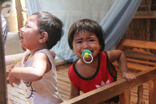 Bấu víu lấy người ông ngoại, hai chị em Hương (3 tuổi), Thịnh (2 tuổi) khóc ngất lên vì đói. Trong khi đó, bé Khang (5 tuổi) lục trong tủ tìm thức ăn, mắt lúc nào cũng hướng về ông ngoại đang ẵm em gái 4 tháng tuổi trên tay như cầu cứu.