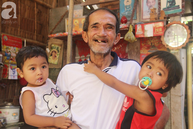 Ẵm Thạch Thị Ý Hương (3 tuổi) và Thạch Thịnh (2 tuổi) trên tay để dỗ ngọt cho qua cơn đói, chốc chốc ông Bích lại hướng mắt về phía ngoài ngõ để đợi bà Biếc về.