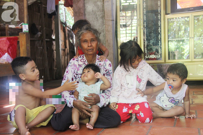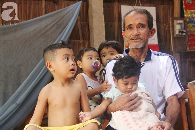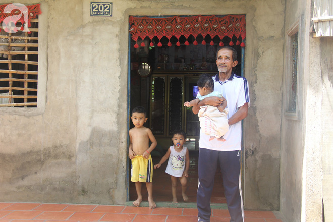Ngồi một góc trên chiếc giường ọp ẹp, ôm những đứa trẻ vào lòng, ông Bích cho biết tất cả 5 đứa cháu (đứa lớn nhất tròn 6 tuổi, bé nhất chỉ mới 4 tháng tuổi) đều là con của người con gái út (23 tuổi) cùng chồng.