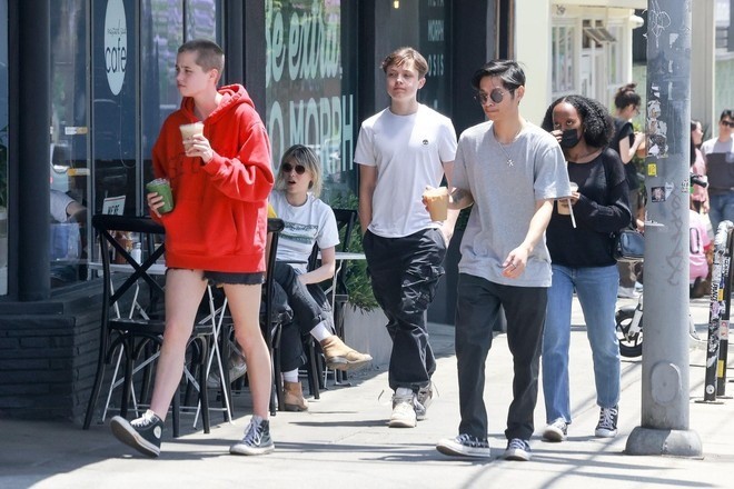 | Chuyến xuống phố của Knox (áo trắng, giữa) và những đứa trẻ Gen Z đến từ gia đình nổi tiếng nhất Hollywood. |