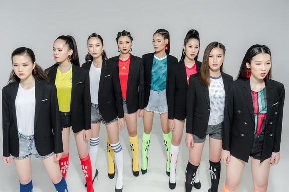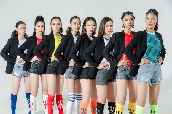 'Bà trùm Venus miền Bắc' Hạ Vy cùng dàn mẫu trẻ đã mix đồ có 1-0-2 khi diện quần jeans short ngắn khoe chân dài kết hợp áo phông thể thao, vest đen cá tính, tất len sặc sỡ sắc màu phối cùng giày cao gót tạo nên sự mới lạ cổ vũ cho mùa World Cup.
