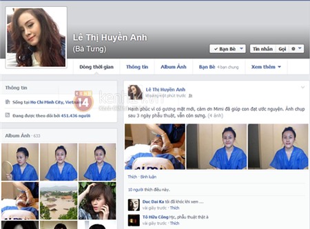 Hình ảnh sau phẫu thuật thẩm mỹ được Huyền Anh đăng tải lên trang cá nhân. |
