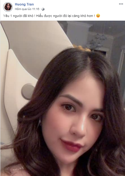 Tuy nhiên, niềm hạnh phúc viên mãn ấy dường như chỉ là vẻ bề ngoài. Khoảng gần 1 năm trở lại đây, Hương Trần liên tục đăng status đầy tâm trạng, với những biểu hiện cảm xúc khiến dân tình phải chú ý. Lúc thì ghen tuông khi chồng vướng lùm xùm tình ái với Quế Vân, lúc thì đăng đàn chửi bóng gió việc có người thứ 3 xen giữa... nhiều đến mức dân mạng đã lên tiếng chỉ trích Hương Trần "vạch áo cho người xem lưng", làm xấu mặt chồng, ảnh hưởng đến hình tượng gia đình của công chúng.