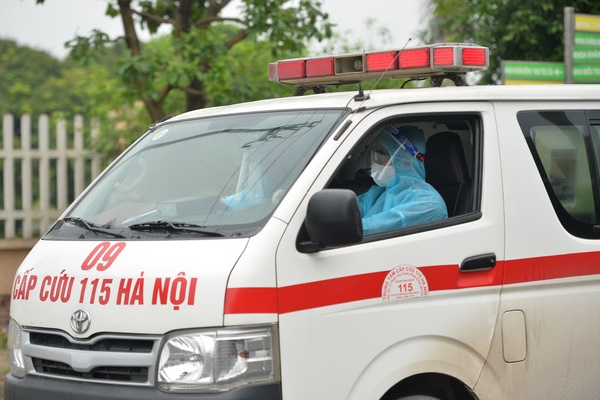 Xe cấp cứu vận chuyển các bệnh nhân Covid-19 đến Bệnh viện Bệnh Nhiệt đới Trung ương. Ảnh: Phương Thảo