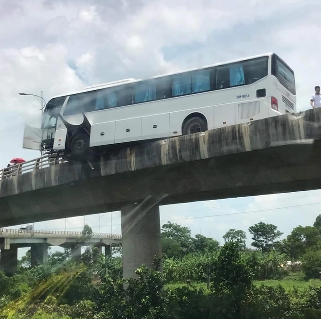 Theo thông tin chúng tôi nắm được, vào khoảng hơn 9h sáng nay (12/7) chiếc xe ô tô khách chở công nhân 1 công ty khi về đến cầu Bình Than nối thị xã Quế Võ và huyện Gia Bình (Bắc Ninh), do tránh xe máy đi cùng chiều nên đã tông vào thành cầu. Hậu quả, chiếc xe ô tô đâm hỏng khoảng 7m lan can cầu và phần đầu xe ô tô treo lơ lửng trên thành cầu.