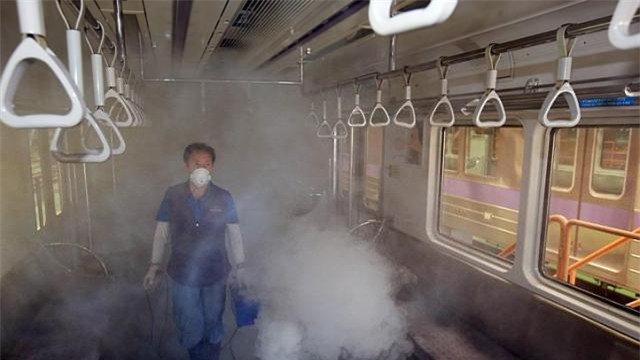 Bác sĩ cho rằng, thị trưởng đã đưa thông tin sai lệch về ông khiến dư luận hoang mang. Ảnh: Một nhân viên đang khử trùng tàu điện ngầm ở Seoul.