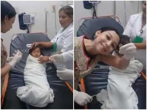 Một tài khoản Facebook tên Krishnendu Mitra đã chia sẻ một đoạn video về cách bác sĩ xử lý khi trẻ bị hóc dị vật rất bình tĩnh dù đứa trẻ sợ đến phát khóc. Theo bài đăng thì bé gái trong đoạn video đã nuốt phải 1 đồng xu và đang được bọc kín trong chăn chỉ để lộ mỗi đầu. Đứng xung quanh là 3 bác sĩ, một người giữ chặt đầu đứa trẻ, một người giữ phần thân và bác sĩ còn lại thì cố gắng luồn một chiếc ống dài vào trong cơ thể đứa trẻ qua đường miệng.