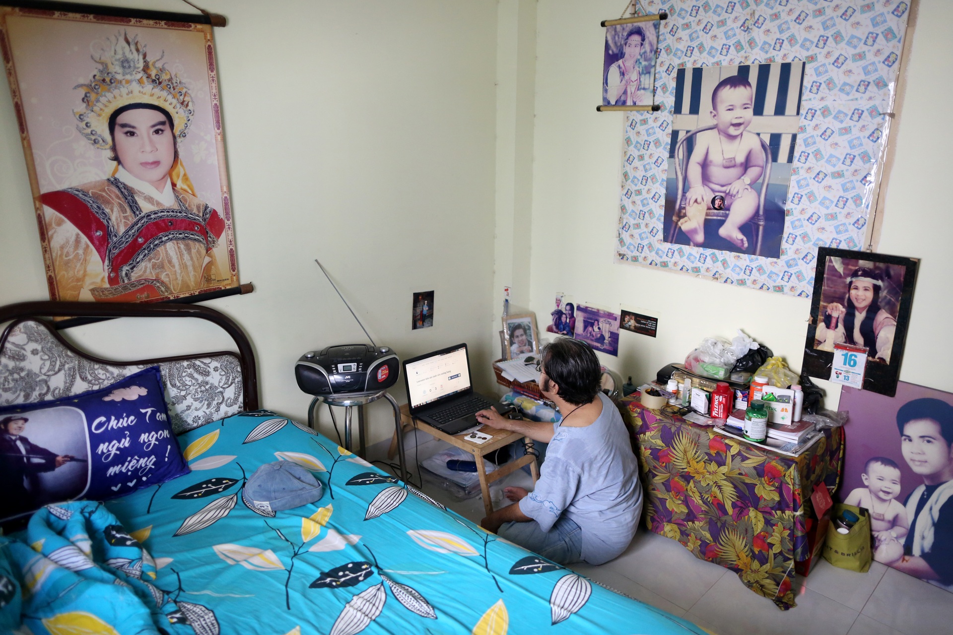 Mỗi sáng, nghệ sĩ ngồi đây để đọc tin tức, cập nhật thời sự. Thỉnh thoảng, ông thấy vui khi thấy đâu đó trên YouTube có người đăng tải hình ảnh về mình.