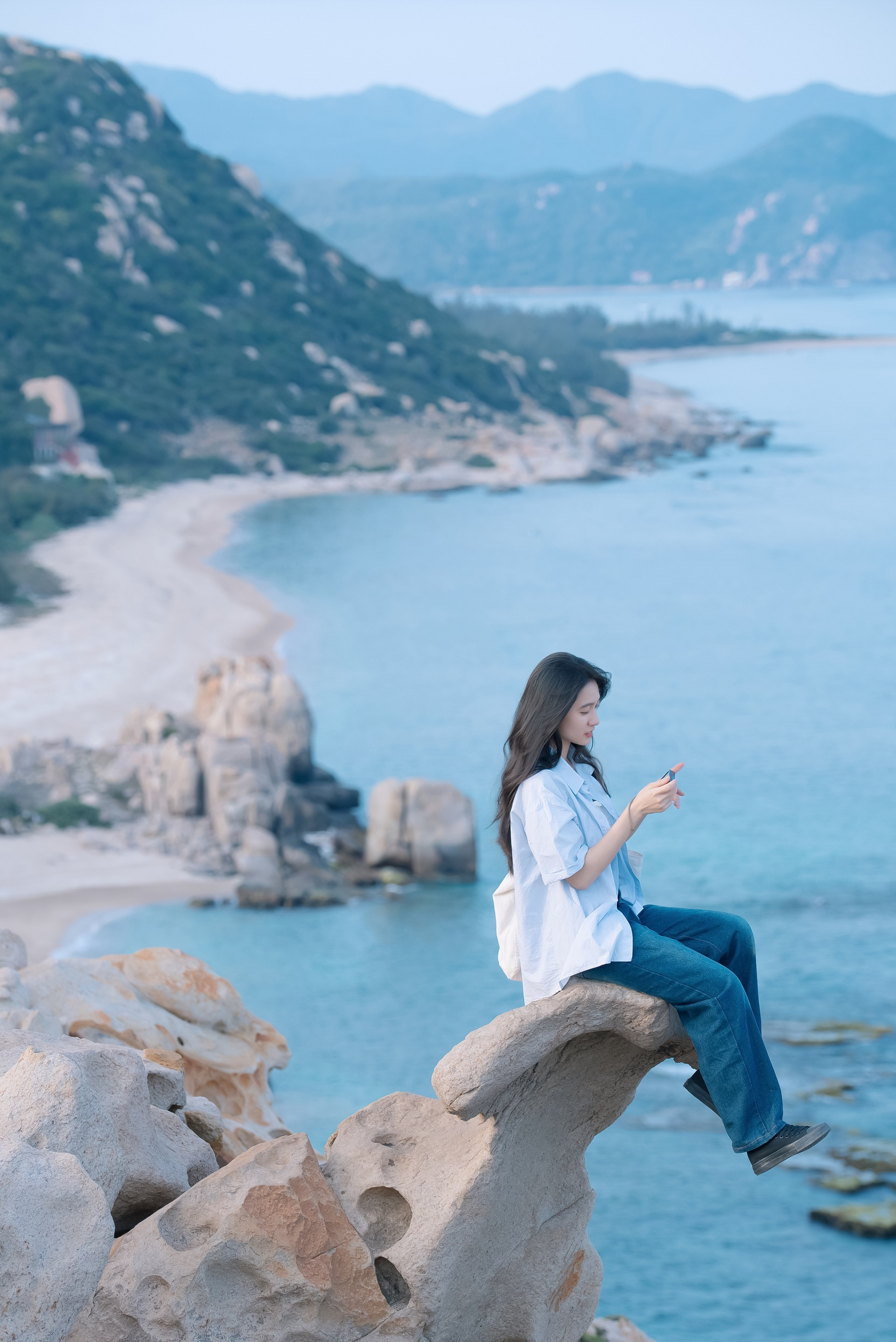 Tới biển "vô cực" du khách nên quay time-lapse để có hiệu ứng đẹp mắt, hoặc chụp ảnh góc rộng. Mỹ Duyên có sử dụng thiết bị flycam để có hình ảnh toàn cảnh ấn tượng.