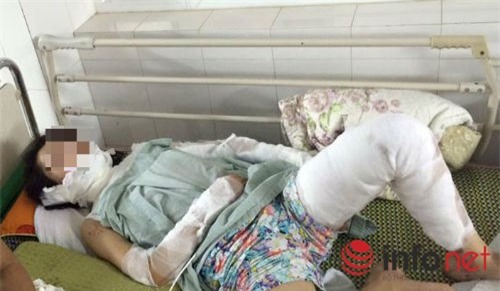 Khi nhập viện chị bị bỏng nặng phần chân và phần phụ. Bác sĩ cho biết do đặc thù mặc váy lửa bén ở phần dưới váy nên bệnh nhân như thế ít bị bỏng ở mặt. Song phần phụ của bệnh nhân lại bị tàn phá khá nặng nề.