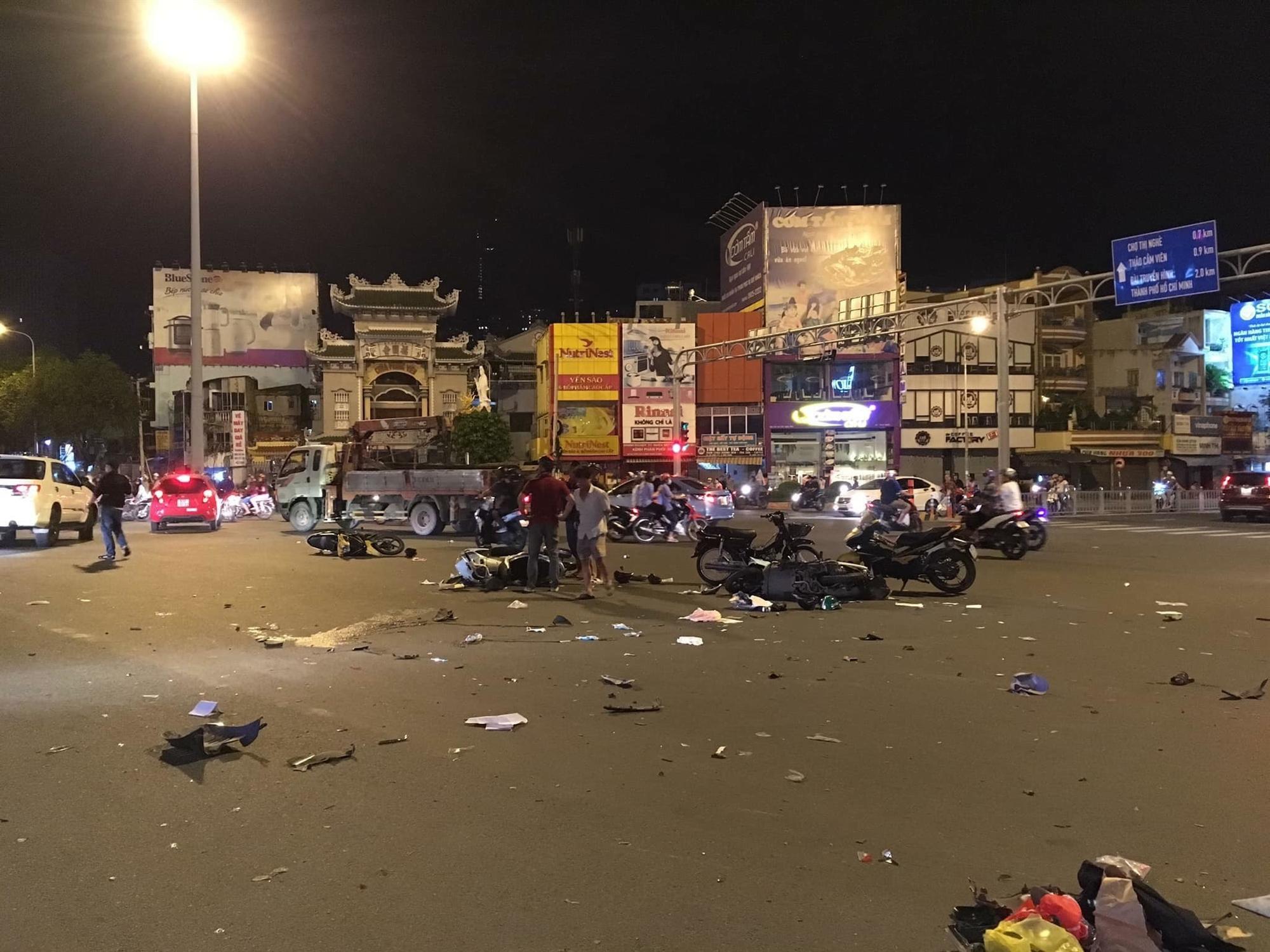 Hiện trường vụ nữ tài xế BMW tông 5 xe máy ở vòng xoay Sài Gòn, 1 người tử vong.