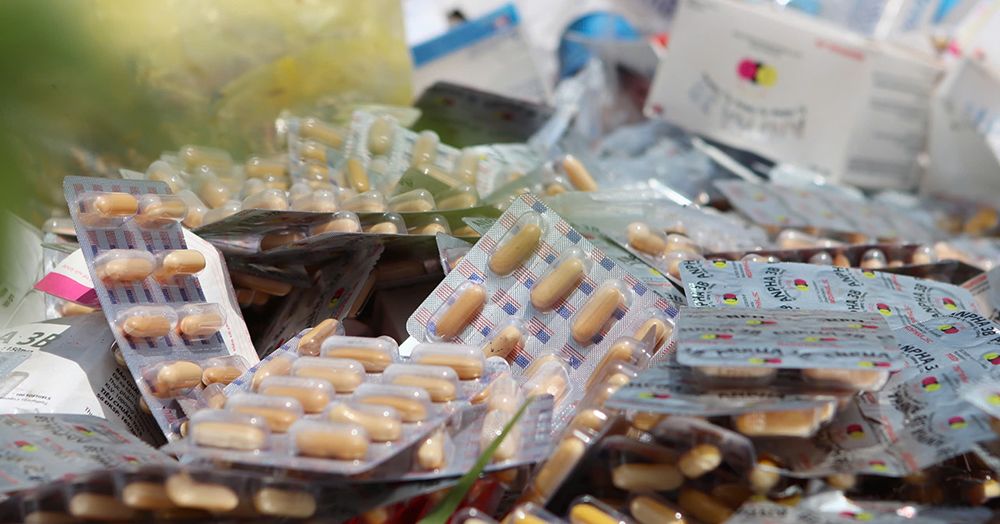 Đáng chú ý, nhiều sản phẩm còn nguyên bao bì, thùng hộp, nhưng phần lớn đã hết hạn sử dụng từ năm 2024.
