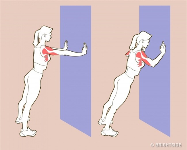 - Gập khuỷu tay, người đổ về phía tường, giữ cho cơ thể thật thẳng.