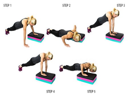 Đưa tay phải sang bên phải, thực hiện động tác hít đất và quay trở lại vị trí ban đầu