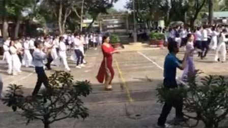 Điều đáng nói ở đây chính là việc cả thầy và trò của trường cùng nhảy theo một điệu nhạc rất sôi động, phù hợp với lứa tuổi teen - học trò.