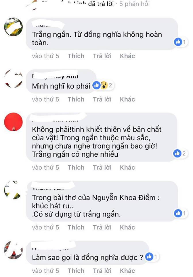 “Về từ thì trong ngần nói về màu sắc, tinh khiết là về chất cấu tạo nên nó không đồng nghĩa. Tuy nhiên để xác định cho chính xác cần xem xét ngữ cảnh sử dụng mới được”, một tài khoản Tuyền Phan viết.