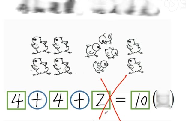 Tất nhiên, khi xem qua hình ảnh trên, sờ sờ trước mắt là một đàn gà chia thành 3 tốp, trong đó tốp bên trái và ở giữa đều có 4 con, tốp bên phải gồm 2 con. Như vậy, phép tính đơn giản và chính xác mà nhiều người nghĩ tới là 4+4+2=10, tương ứng với các khoảng trống mà đề bài cho.