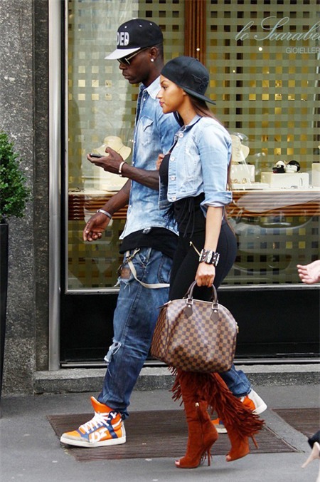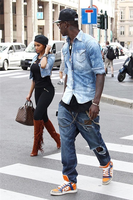 Tiền đạo Milan và người yêu đều mặc trang phục cá tính, đội mũ lưỡi trai trông rất "ngầu". Hai người không ngại ngần khoác tay nhau trên phố đông người. Balotelli từng chia sẻ, Neguesha là người con gái đầu tiên mang lại cảm giác yêu thương cho anh. Suýt để mất bạn gái vì "cuồng ngôn", thời gian tới ngôi sao đình đám này có lẽ sẽ phải cẩn thận hơn trong lời ăn tiếng nói.