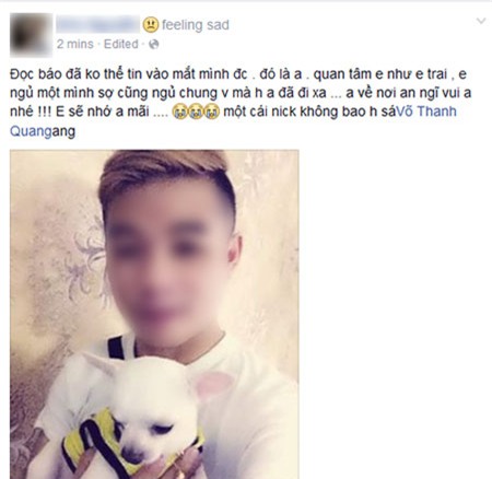 Chàng trai trẻ được đưa đi cấp cứu tại Bệnh viện 115 nhưng đã không qua khỏi vì vết thương quá nặng. Cái chết bất ngờ của Thanh Quang khiến bạn bè và người thân không khỏi đau đớn. Trên facebook, rất nhiều bạn bè đã chia sẻ những dòng status đẫm nước mắt trước sự ra đi quá đột ngột của người bạn, người thầy của mình.