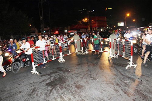 Hiện trường nơi anh Quang bị cô gái đâm gục và tử vong tại vòng xoay Dân Chủ. Ảnh:T.N. |