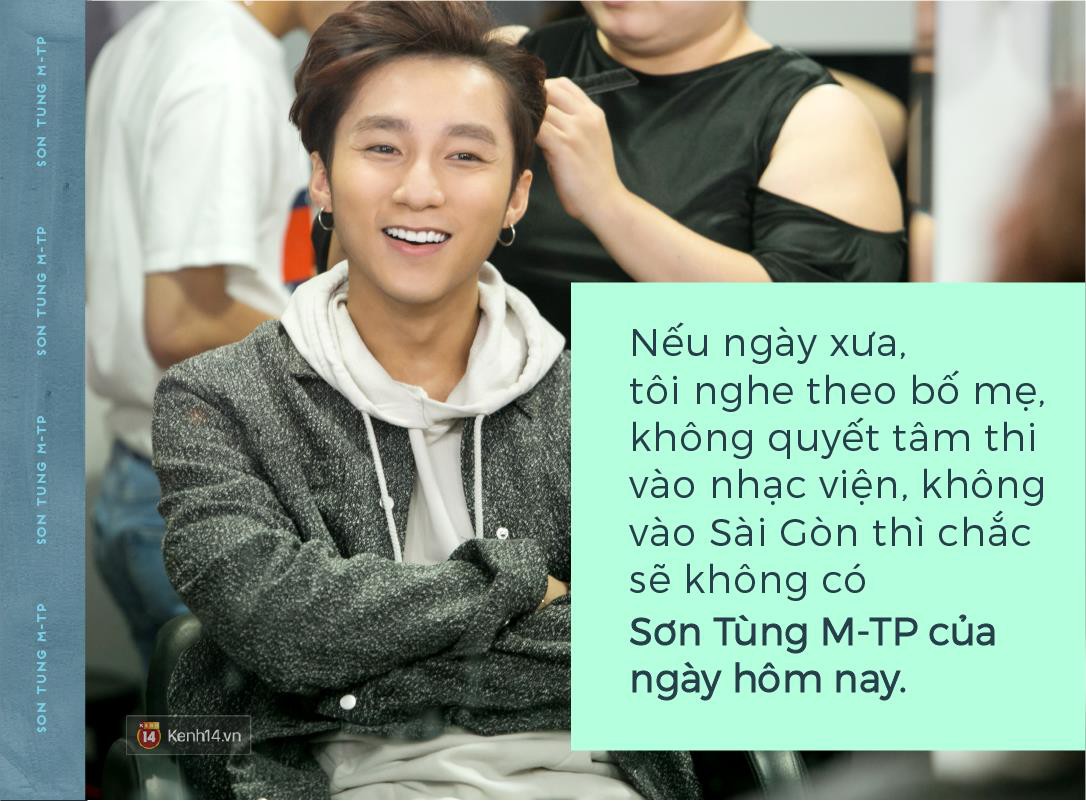 Sơn Tùng từng chia sẻ: "Muốn theo con đường ca hát hay bất kì ngành nghề gì, bạn cũng cần phải có đam mê. Đặc biệt là ca hát, ca sĩ phải yêu nó và có thể hát mọi lúc, mọi nơi. Để thành công, may mắn chưa đủ, cần phải có thêm năng khiếu, đam mê và cả sự chăm chỉ tập luyện nữa".