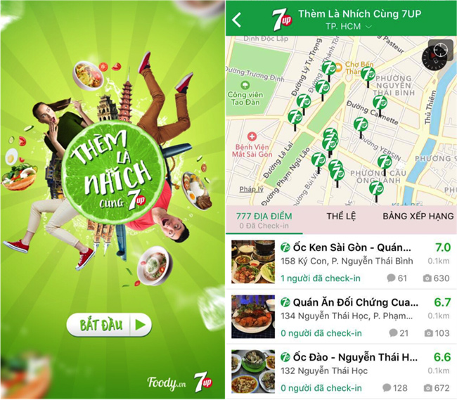 Bản đồ ẩm thực Thèm là nhích với 777 quán được 7Up và Foody chọn lọc kỹ lưỡng, từ món ăn no đến đồ ăn vặt đều có đủ. Đây đều là những quán cực ngon, cực chất, đáp ứng được nhu cầu của các tín đồ ẩm thực.