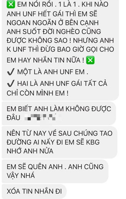 "Không hiểu người yêu tao nó nghĩ gì. Nó bắt tao unfriend hết mấy người tao hay nói chuyện và tao đồng ý và đã unf hết, unf xong thì bảo unf hết gái trong facebook, hoàn cảnh như anh em thì anh em sẽ xử sự như thế nào?", lời chia sẻ kèm đoạn hình ảnh tin nhắn được một anh chàng đang vô cùng bối rối chia sẻ khiến nhiều người vừa bật cười, vừa hơi tức giận. Có phải vì phụ nữ là giống loài khó hiểu?