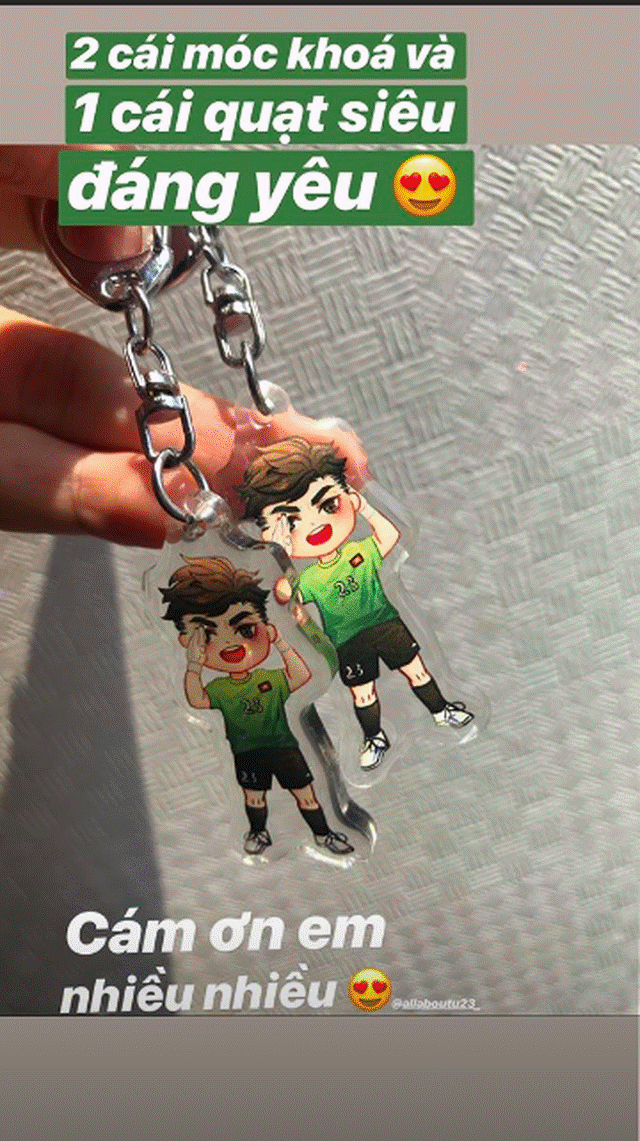 Fan tặng Yến Xuân món quà là móc chìa khoá có hình chibi của thủ thành Lâm "Tây"
