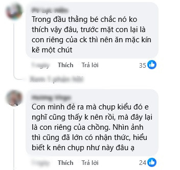Tuy nhiên, trong bức hình chụp cùng con trai lớn, Thùy Anh lại vướng loạt tranh cãi trái chiều. Dưới loạt ảnh gây bão, nhiều netizen đã để lại bình luận chỉ trích gay gắt: "Mặc đồ vậy không nên chụp với con, phản cảm lắm", "Văn hóa tồi, mẹ lại mặc vậy ôm chụp với con trai lố thật", "Nên ăn mặc kín kẽ một chút khi chụp cùng con riêng"...