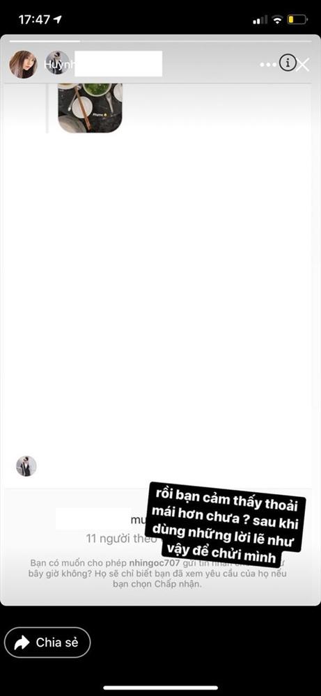 Mới đây, Huỳnh Anh đã lần đầu tiên lên tiếng sau rất nhiều những áp lực và chỉ trích khi công khai chuyện tình cảm. Cô nàng cap màn hình 1 đoạn inbox bị người lạ chửi với câu từ vô cùng nặng nề, xúc phạm kèm chia sẻ: "Rồi bạn cảm thấy thoải mái hơn chưa? Sau khi chửi mình với những lời như vậy".