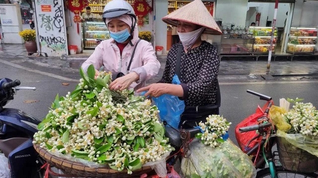 Những gánh hàng rong chở đầy những chùm hoa trắng muốt, tỏa hương thơm nhẹ nhàng vào không khí, như một phần không thể thiếu trong những ngày đầu xuân.