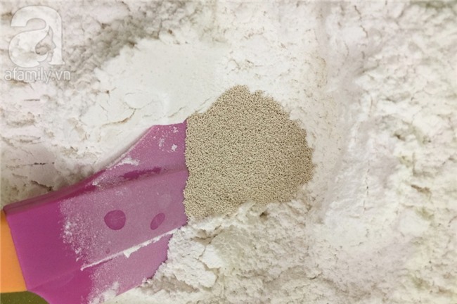 Thêm vào men nở khô. Tiếp tục trộn đều.