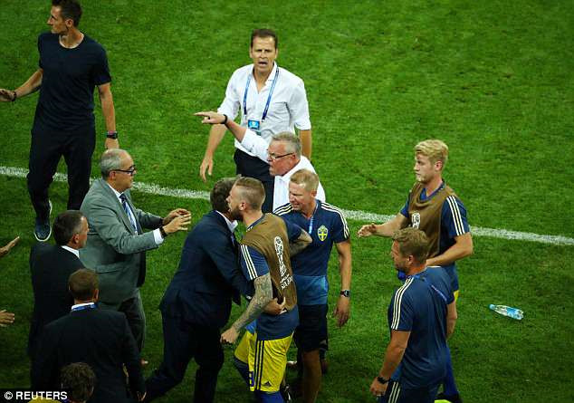 HLV Andersson của đội tuyển Thụy Điển hậm hực nói: "Sau pha ăn mừng ấy, rất nhiều người trong số chúng tôi vô cùng khó chịu. Thụy Điển đã chiến đấu kiên cường trong suốt 95 phút, rồi khi tiếng còi của trọng tài cất lên, họ chỉ đến bắt tay rồi bỏ đi. Điều đó khiến tôi rất tức giận".