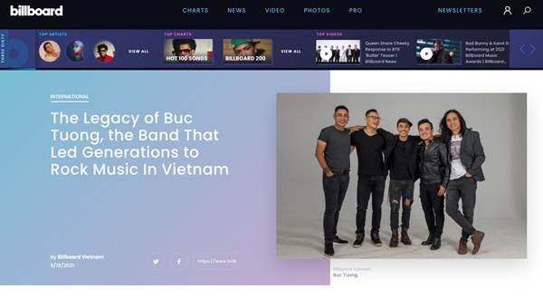 Tạp chí lừng danh tại Mỹ giới thiệu Bức Tường (thành lập năm 1995) là một trong những nghệ sĩ nhạc rock thành công đầu tiên tại Việt Nam. Billboard nhận định về âm nhạc của nhóm: “Những sáng tác của Bức Tường tuy giản dị nhưng giàu tính nhân văn, thu hút một lượng khác giả mới cho rock Việt”. Trang tin tức về âm nhạc nổi tiếng này cũng điểm qua sự nghiệp của ban nhạc lừng danh với 6 album phòng thu, hàng loạt liveshow chất lượng, những chuyến lưu diễn quốc tế cùng Giải thưởng Âm nhạc Cống hiến danh giá.