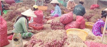 Giá hành tím giảm hơn một nửa so với 2 tháng trước nên nông dân không thu được lãi nhiều hoặc chỉ huề vốn. |