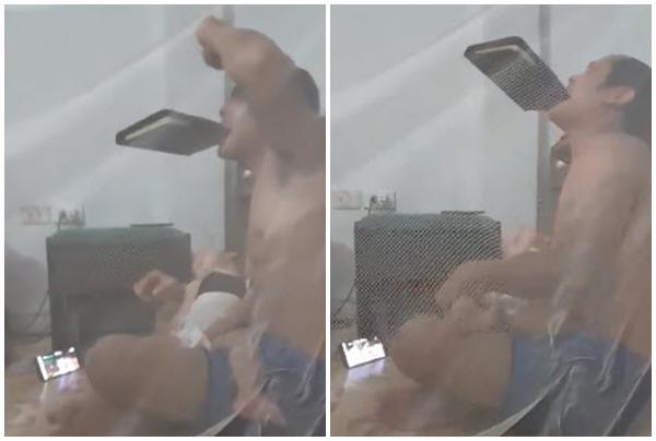 Trong đoạn video mà chị H.N chia sẻ thấy được cảnh ông bố trẻ vừa ôm con nhỏ ru ngủ trong lòng nhưng ánh mắt vẫn hướng vào chiếc điện thoại để theo dõi trận tứ kết. Và đỉnh điểm là vào giây phút khung thành đối thủ rung lên vì quả bóng tròn của Văn Toàn, ông bố trẻ quá sung sướng nhưng phải kìm hãm lại vì con nhỏ nên chỉ biết vơ lấy quyển sổ và ngậm chặt vào miệng. Thế nhưng tay chân vẫn không ngừng hò reo cho màn ăn mừng.